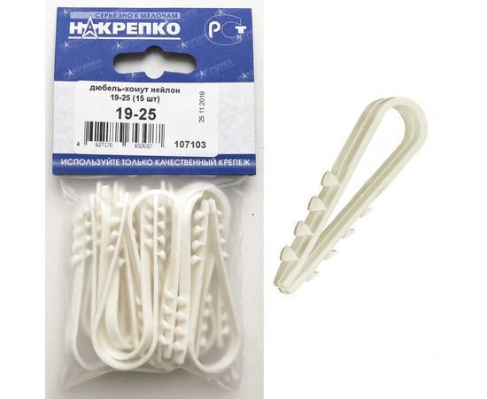 Название 1-2.Sale: Дюбель-хомут ДХК-25 для круглого кабеля нейлон белый 19-25 (15 шт BL) (цена за уп) НАКРЕПКО 107103