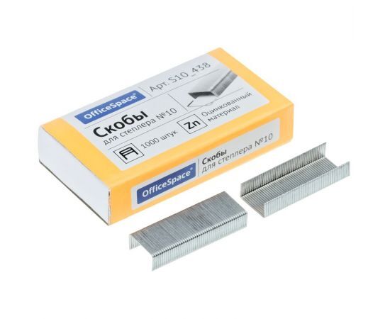 Скобы канцелярские № 10 OfficeSpace оцинкованные подойдут для скрепления листов бумаги. Скобы упакованы в картонную коробочку по 1000 штук. Канцелярские скоб
