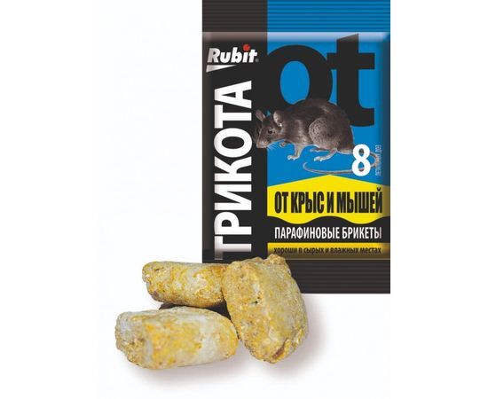 Название 1-2.Sale: От грызунов приманка тесто-брикет параф. 80гр. (8шт) мумиф. Rubit ТриКота (бродифакум)