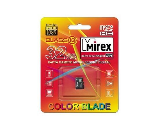 Высокоскоростная карта на 32 ГБ памяти micro SECURE DIGITAL High Capacity (class 10) Mirex совместима cо всеми распространенными устройствами чтения и записи флэш-карт соот