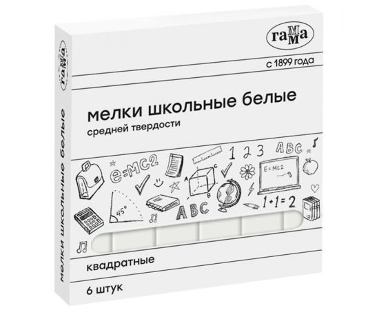 Название 1-2.Sale: Мелки школьные Гамма, белые, 06шт., средней твердости, квадратные, картонная коробка