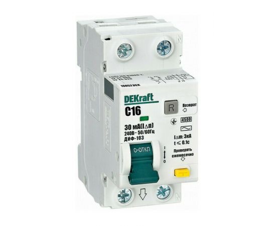 Название 1-2.Sale: DEKraft дифф. автоматический выкл. АВДТ ДИФ-103 1P+N C16А 30мА, тип AC, 4,5кА, электрон. 16052DEK