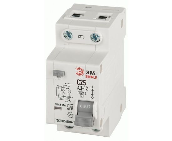 Название 1-2.Sale: ЭРА SIMPLE дифф. автоматический выкл. АВДТ (АД-12) 1P+N C25А 30мА, тип АС, 4,5кА, электрон. 58922