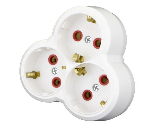 AY-KA (АЙКА) разветвитель (тройник) 3 розетка 16A 250В белый, земля, круглый (Турция) 7713000