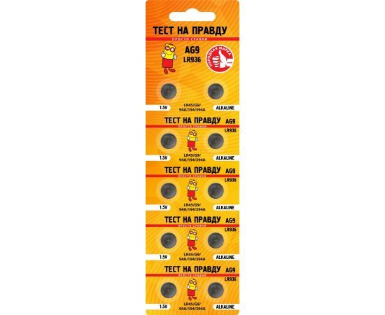 Батарейки AG9 LR936 (G9/LR45/94A/194/394A) BL10, E1M Тест на правду - блистер 10шт.