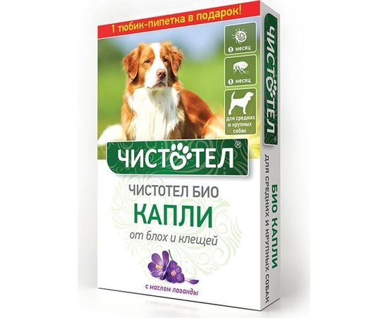 Название 1-2.Sale: Капли от клещей/блох БИО Лаванда для средних и крупных собак (2 пипетки*2,5 мл) C512 Чистотел