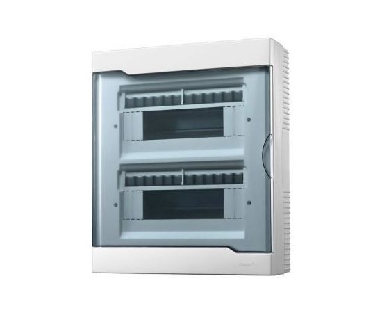 Название 1-2.Sale: Lezard бокс (корпус) пластик ЩРН-П-24 мод. навесной БЕЛЫЙ с дымчатой дверцей IP40 730-2000-024