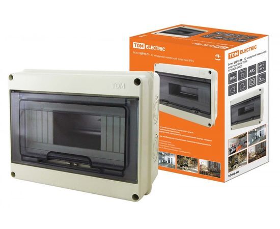 Бокс ЩРН-П TDM 12 модулей, навесной, пластик, IP65 используется для монтажа модульной аппаратуры. Изделие является дополнительной защитой помещения