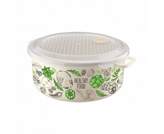 Название 1-2.Sale: Емкость д/СВЧ и хранения продуктов 2л, круглая, бежевая, декор микс 43310630753 Phibo/Бытпласт