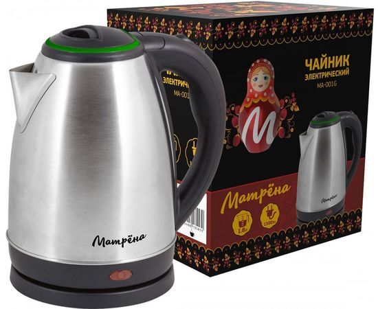 Чайник электр. Матрена МА-001 цвет крышки зеленый (диск, 1,8л) 1,5кВт, нерж сталь, 5458
