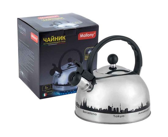 Название 1-2.Sale: Чайник Mallony MAL-CITY01, 2,8л, со свистком 0,4мм, руч.нейлон, меняет цвет при нагрев, метал 985609