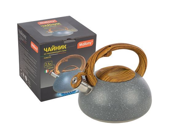 Чайник метал. со свистком (0,4мм) FORESTA, 2,5л, цвет мрамор, ручка бакелит, под дерево 7192 Mallony