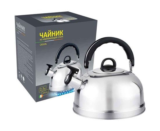 Чайник метал.со свистком (0,3мм) CASUAL, 2,7л, ручка пластик, нерж.сталь 4260 Mallony