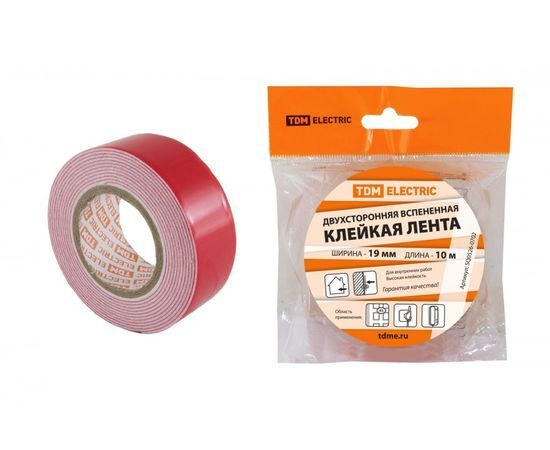Двухсторонняя вспененная клейкая лента TDM ширина 19 мм, длина 10 м SQ0526-0702 предназначена для крепления и фиксации декоративных элементов (табличек, крючков, рамок,