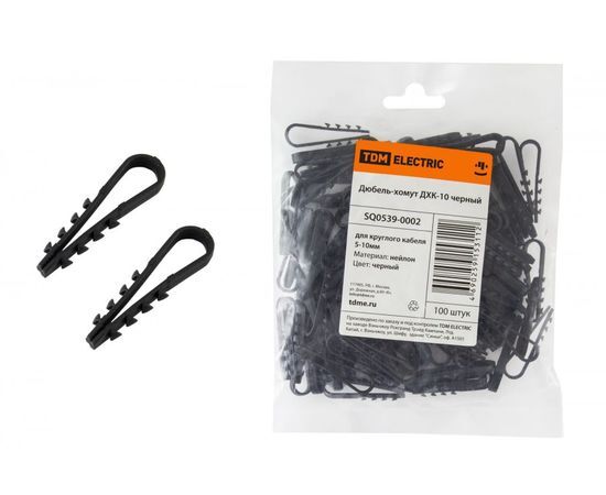 Название 1-2.Sale: TDM ДХК-10 дюбель-хомут д/кругл. кабеля 5-10мм нейлон черный (100шт/уп.,цена/уп.) (10!) SQ0539-0002