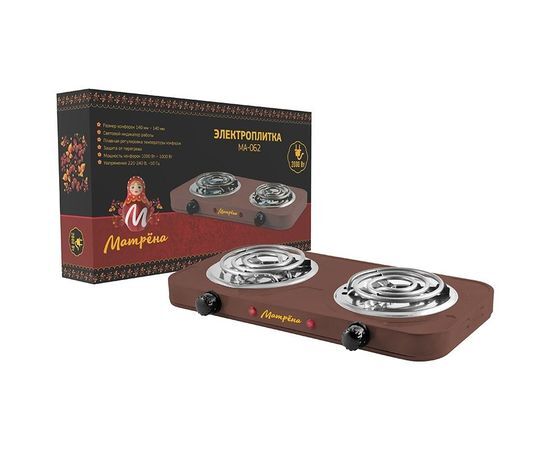 Название 1-2.Sale: Электроплитка Матрена МА-062, 2 конфорки, спираль (ТЭН) 1кВт+1кВт, коричневая 6058