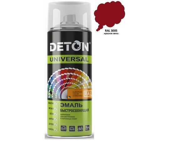 Название 1-2.Sale: DETON Universal Эмаль аэрозоль 520мл акрил быстросохн. RAL3005 КРАСНОЕ ВИНО арт.DTN-A07246