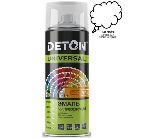 Название 1-2.Sale: DETON Universal Эмаль аэрозоль 520мл акрил быстросохн. RAL9003 БЕЛАЯ СИГНАЛЬНАЯ МАТ. арт.DTN-A07259
