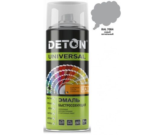 Название 1-2.Sale: DETON Universal Эмаль аэрозоль 520мл акрил быстросохн. RAL7004 СЕРАЯ СИГНАЛЬНАЯ арт.DTN-A07252