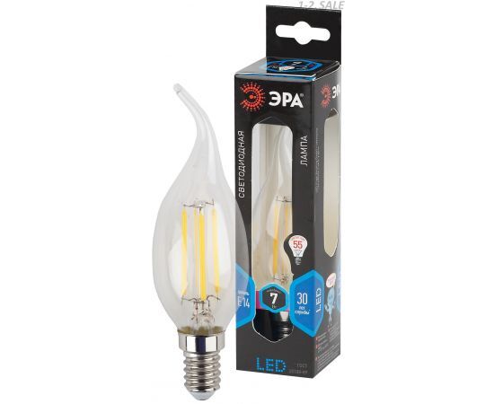 Название 1-2.Sale: ЭРА F-LED свеча на ветру BXS-7w-840-E14 филамент (нитевидная), прозр.