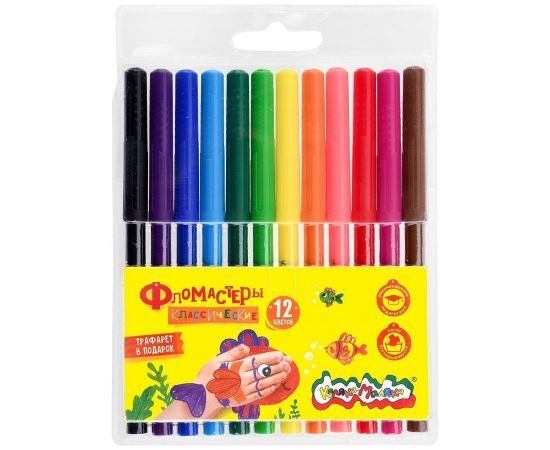 Название 1-2.Sale: Фломастеры Каляка-Маляка классические 12 цв.кругл.корп.легкосмываемые круглая блист. упак.Арт.ФКМ12