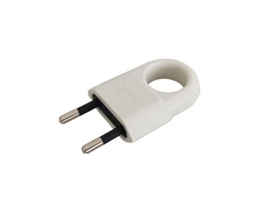 General вилка 10А 250В (АБС-пластик, прямая, плоская, с кольцом, белая, б/з) 470515