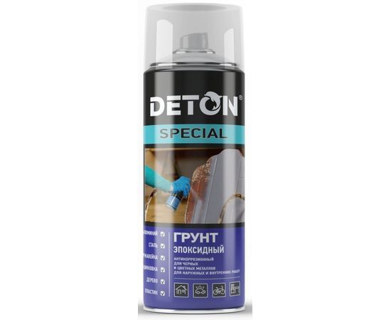 Качественный быстросохнущий эпоксидный грунт в аэрозоле DETON SPECIAL (DTN-A07344) применяется для подготовки поверхности под покраску и обладает антикоррозионными свой