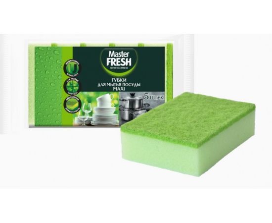 Название 1-2.Sale: Губки для посуды поролон/абразив,95*65*27мм,MAXI,5шт,С0005790/Master FRESH