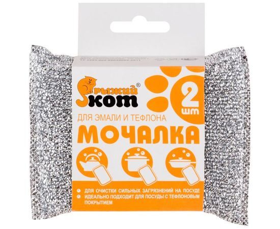 Губка для посуды (мочалка) для эмали и тефлона 2шт/уп, цена за уп, 310287 Рыжий Кот