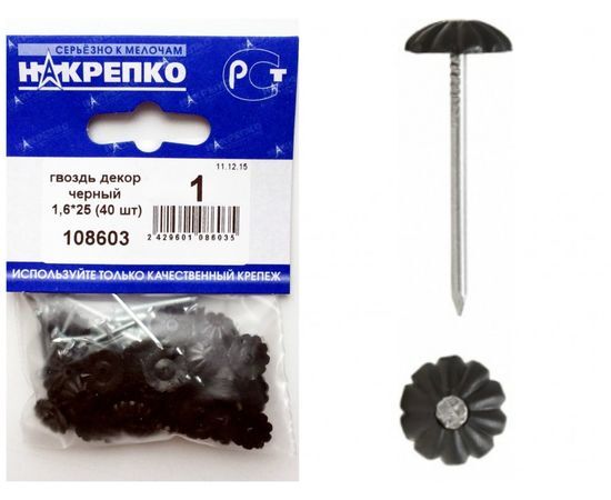 Название 1-2.Sale: Гвоздь декоративный черный 1,6*25 (40 шт BL) (цена за уп) НАКРЕПКО 108603