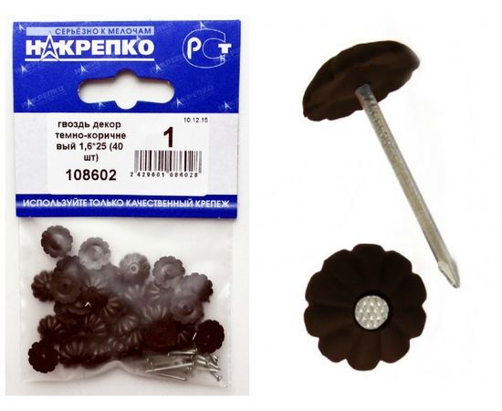 Название 1-2.Sale: Гвоздь декоративный темно-коричневый 1,6*25 (40 шт BL) (цена за уп) НАКРЕПКО 108602