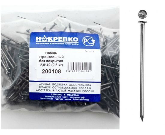 Название 1-2.Sale: Гвоздь строительный без покрытия 2,0*40 (0,5 кг EC) НАКРЕПКО 200108