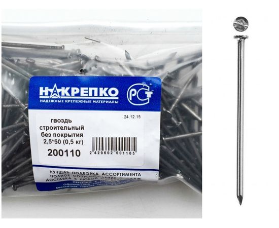 Название 1-2.Sale: Гвоздь строительный без покрытия 2,5*50 (0,5 кг EC) НАКРЕПКО 200110
