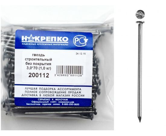 Название 1-2.Sale: Гвоздь строительный без покрытия 3,0*70 (1,0 кг EC) НАКРЕПКО 200112