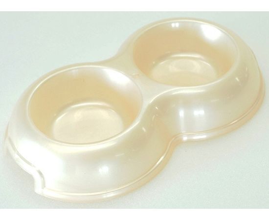 Название 1-2.Sale: Миска для кошек/собак двойная 2*200мл пластик, бежевый перламутр 3530294 HOMEPET
