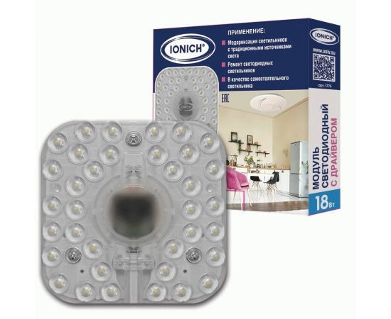 Название 1-2.Sale: IONICH модуль св/д с драйвером 18W(1440lm) 6500K 6K 120x120x30 с линз.рассеив. на магнитах 1775
