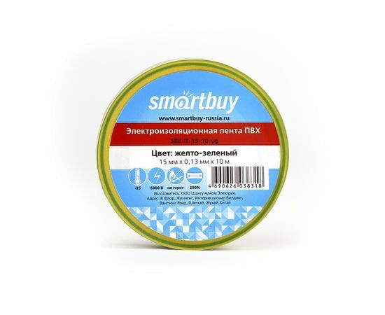Название 1-2.Sale: Smartbuy Изолента ПВХ 15/10 0.13х15мм, 10метров, желто-зеленая (SBE-IT-15-10-yg)