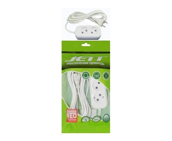 Название 1-2.Sale: Jett сет. удлинитель ПВС 2х0.75 2роз. 10м 10А белый РС-2