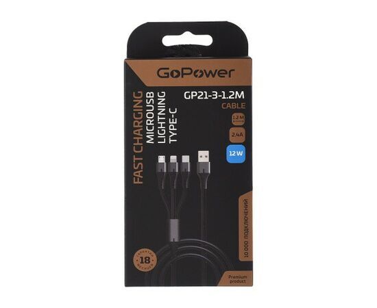 Кабель GoPower GP21-3-1.2M USB (m)-Type-C/Lightning/microUSB (m) 1.2м.
