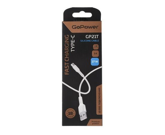 Название 1-2.Sale: Кабель GoPower GP21T USB (m)-Type-C (m) 3.0A 27W, 1м, силикон белый (1/200/800)