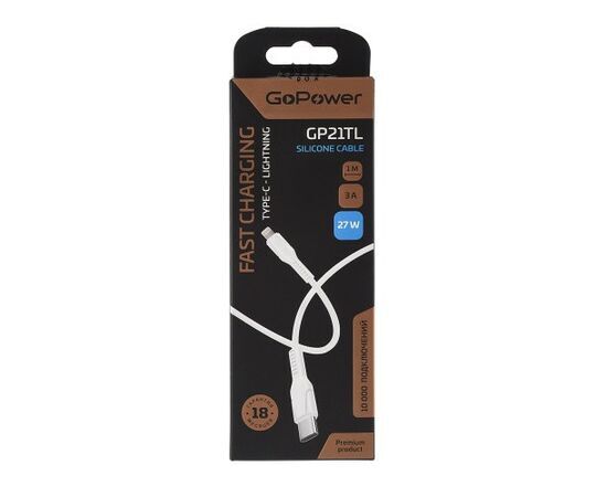 Название 1-2.Sale: Кабель GoPower GP21TL Type-C (m)-Lightning (m) 3.0A 27W, 1м, силикон белый (1/200/800)