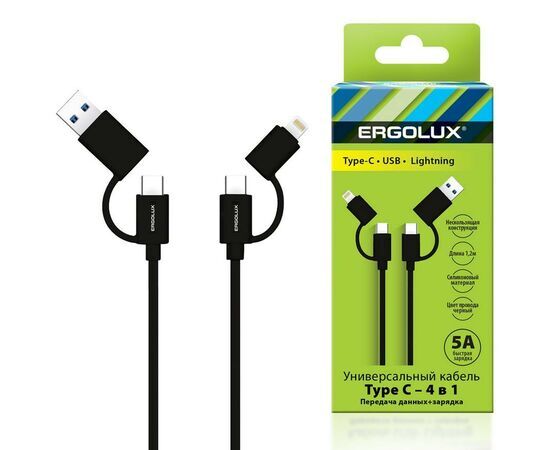 Название 1-2.Sale: Дата-кабель 4 в 1: USB/Type-Cшт.-Type-C/Lightning шт. ERGOLUX ELX-CDC07-C02 5А 1.2м, черн, коробка
