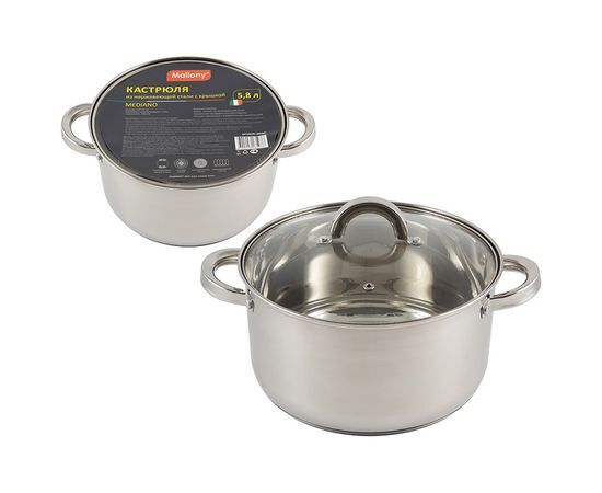 Кастрюля из нерж стали с крышкой, объем 5,8 л, размер: 2413 см, серия "Mediano", тм Mallony