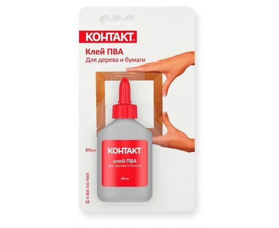 Клей ПВА Контакт 60мл для дерева и бумаги, BL1, КК 144 - Б60 ПВ