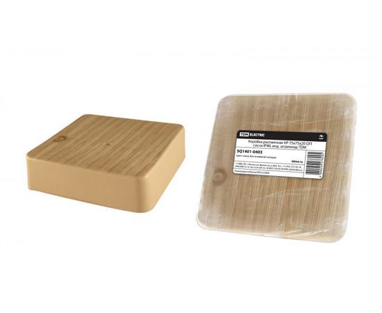 Название 1-2.Sale: TDM коробка распред. 75х75х20мм ОУ IP40 сосна, инд. штрихкод (100!) SQ1401-0403