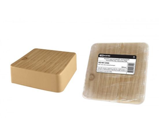 Название 1-2.Sale: TDM коробка распред. 75х75х28 мм ОУ IP40 сосна, инд. штрихкод (80!) SQ1401-0405