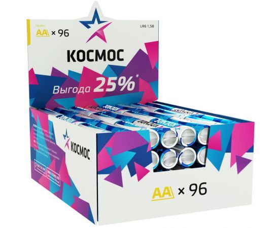 Набор алкалиновых батареек космос LR6, тип АА, 96 штук. Батарейки алкалиновые Космос - оптимальный выбор по соотношению цены и качества. Элементы питания с высоким и средним энергопо