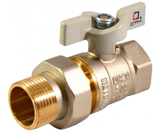 Кран шаровой для воды 1/2" CTM СТАНДАРТ с накидной гайкой, ручкой-бабочкой применяется в качестве запорной арматуры на трубопроводах систем питьевого, хозяйственно-бытов