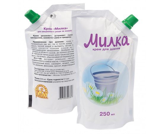 Название 1-2.Sale: Крем для рук и доения Милка 250мл., дой-пак (супер питательный) Ваше Хозяйство(АН4!)