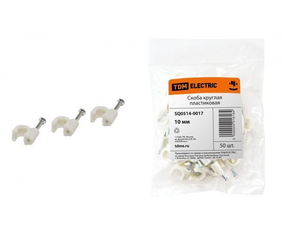 Название 1-2.Sale: TDM скоба пластиковая круглая 10мм (уп. 50 шт., цена за уп.) (50!) SQ0514-0017